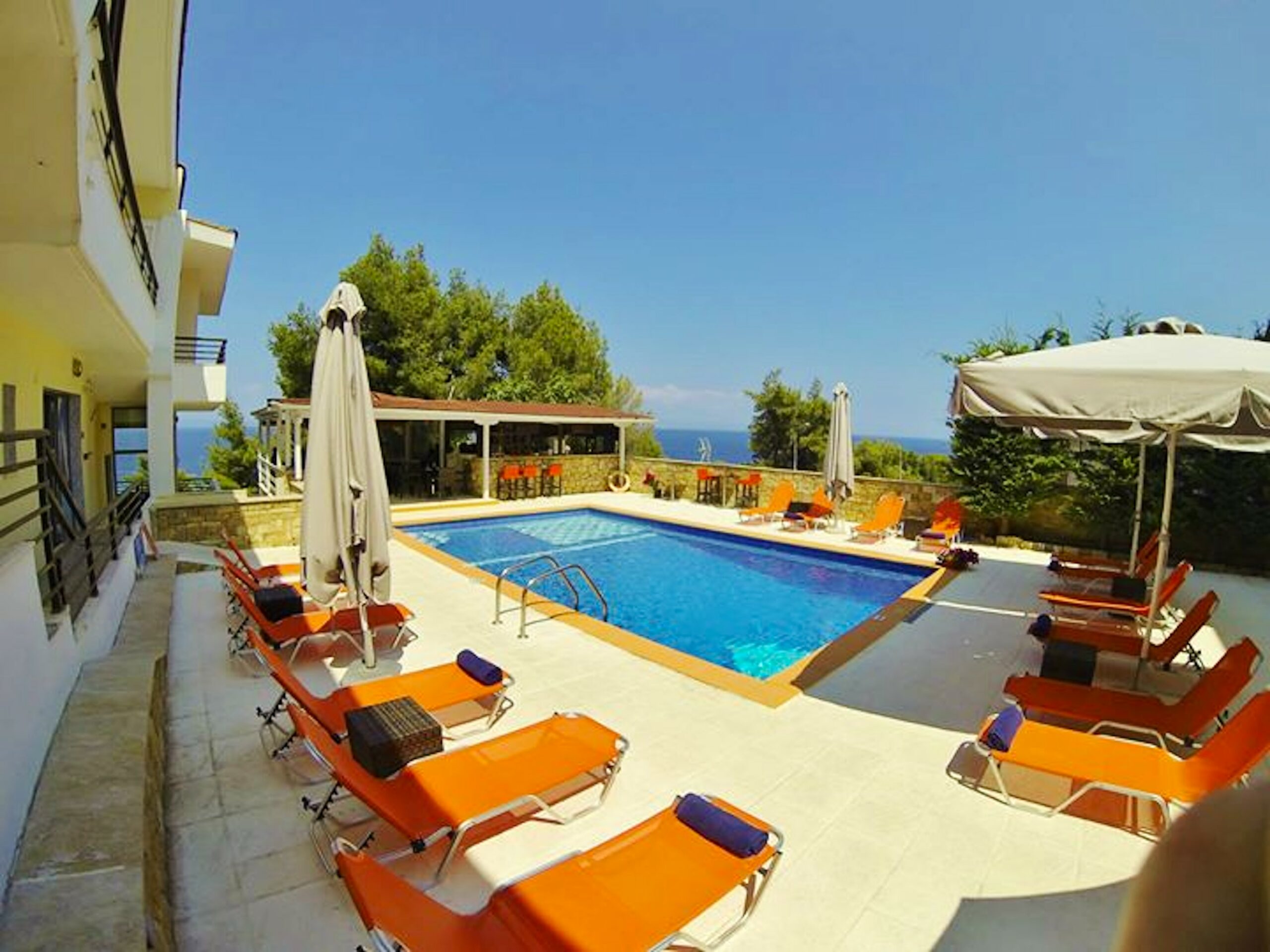 Надворешен базен (бесплатно), бар покрај базен, рецепција 24 / 7, игротека за деца