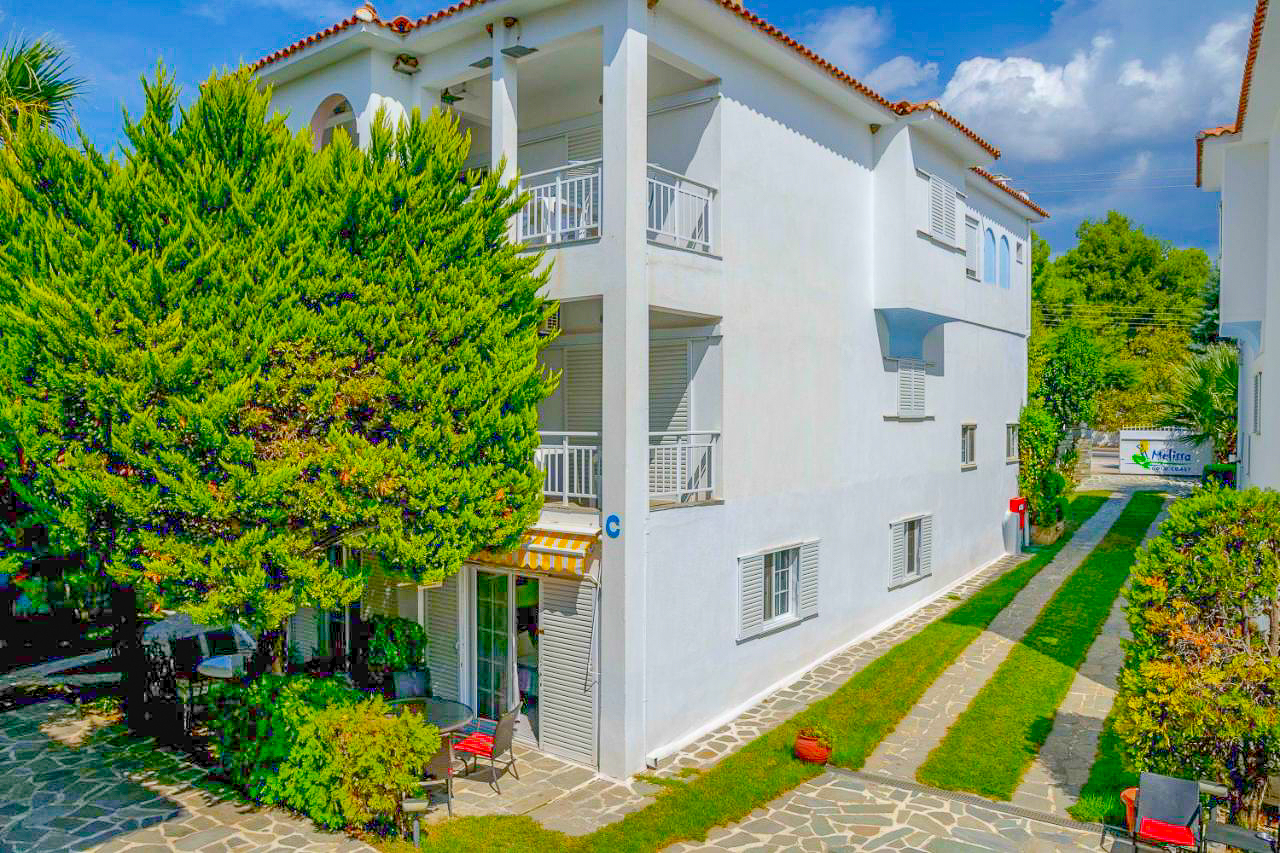 Мелиса Голд Коуст се наоѓа на почетокот на Ситонија. Плажата Псакудија со сино знаме е долга 4км и е совршена дестинација за семејни одмори , нуди лежалки, чадори и спортови на вода, се наоѓа на само 80 метри.