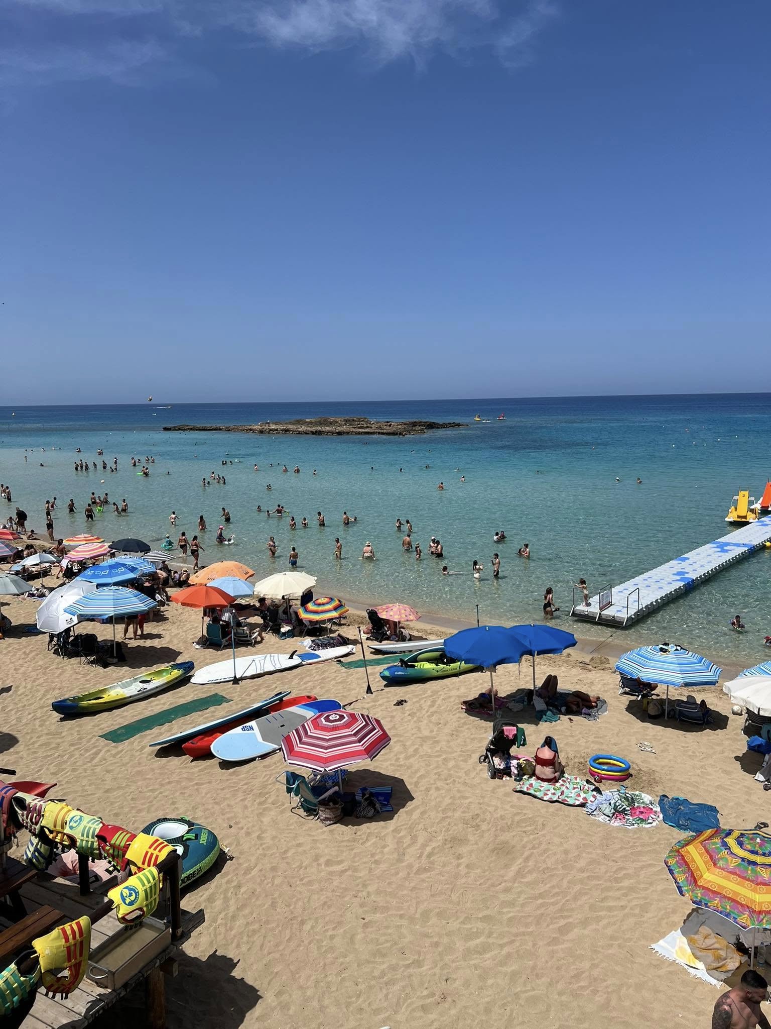 Појадок во хотел од 08:00 до 08:30. Во 09:00 Заминување кон тиркизниот рај и најпознатиот туристички центар на Кипар -Аја Напа- со многу сонце, кристално чисто море и прекрасни пејсажи. Некогашно мало, рибарско село, сместено во увала, ќе имате можност да бидете сведоци на неверојатни погледи, идилични рибарски пристаништа, да истражите средновековни цркви. Поаѓаме со автобус кон Св.Елијас-традиционално дрво на желби и панорамска точка за гледање на Илијада на Портарас. Околу 10:30 се упатуваме кон Кејп Греко-далеку од метежот на централната Аја Напа, – неверојатна, природна знаменитост долж крајбрежјето на Аја Напа со импресивни карпести формации и погледи. Мора да се види „Мостот на љубовта“, прекрасна туристичка атракција во Аја Напа, која се смета за еден од највпечатливите природни мостови на Кипар. Во Аја Напа дури 14 плажи се одликувани со “Сино знаме”, па навистина нема да згрешите која плажа и да ја посетите, а најпопуларна (во Аја Напа и на целиот Кипар) е плажата Ниси. Ниси е плитка лагуна со кристално чиста, тиркизна вода и потсетува на плажите во Малдиви. Можност за плажирање 2 часа.