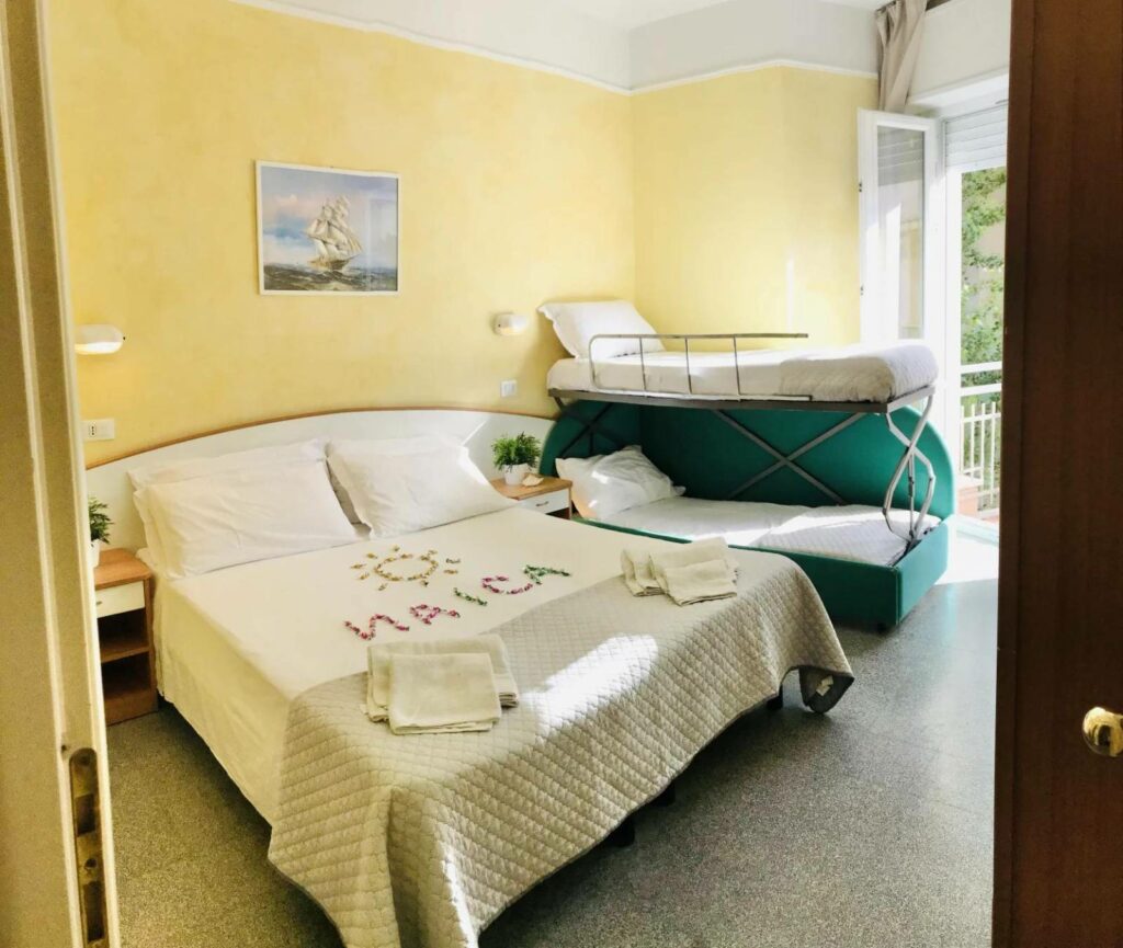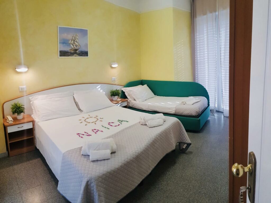 Сместувањето во Римини е во хотелот Naica кој е хотел со 3+ ѕвезди и ги задоволува потребите и барањата на македонските туристи. Хотелот е на само 250 метри од слободната плажа, а престојот во хотелот вклучува и појадок за гостите.