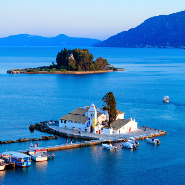 Потоа се упатуваме кон Канони-едно од најубавите места на островот поради незаборавниот поглед што им го нуди на посетителите. Доколку пребарувате на Google фотографии од островот Крф, со сигурност оваа локалција ќе ви го привлече вниманието. За време на посетата на Канони, ќе имаме можност да го посетиме Светиот манастир Панагија Влачерна, а исто така ќе имаме можност да пиеме кафе со панорамски поглед кон морската ширина.
