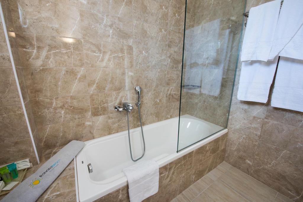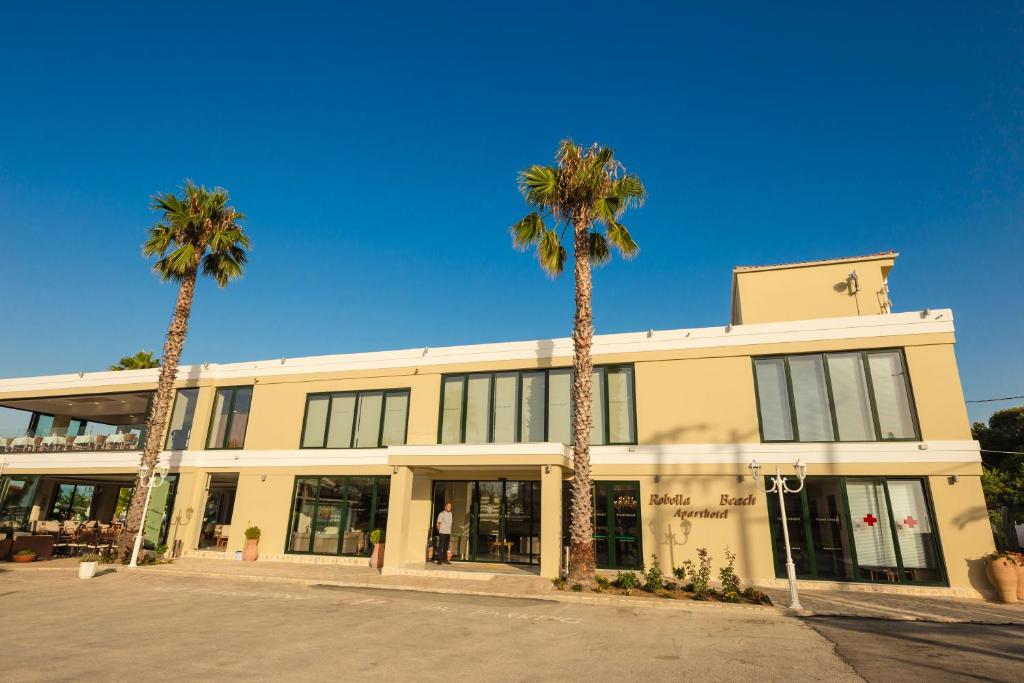 Апартхотелот Robolla Beach во Рода,Крф е уникатно место за уживање. На гостите им нуди одлични капацитети. Има два ресторани, инфинити базен и бар покрај базен. Има и продавница каде што гостите можат да ги купат сите потребни работи за одличен престој. Уживајте покрај базенот на лежалки. Апартхотелот Robolla Beach нуди базени на две различни локации за ваша погодност и секако базени погодни за деца.
