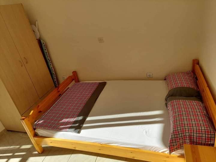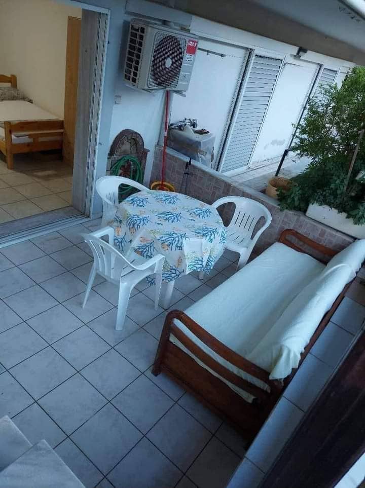 Апартманот се наоѓа на 100м. од плажа.Овој апартман е наменет за 4-5 особи.Има трпезарија со кујна,спална соба со брачен кревет,бања и тераса.Во трпезаријата креветот е на извлекување и една фотеља која исто така и таа се извлекува.Кујната е опремена со основен прибор за припрема на лесна храна.Во апартманот има и машина за перење алишта.Апартманот се наоѓа на втор спрат.