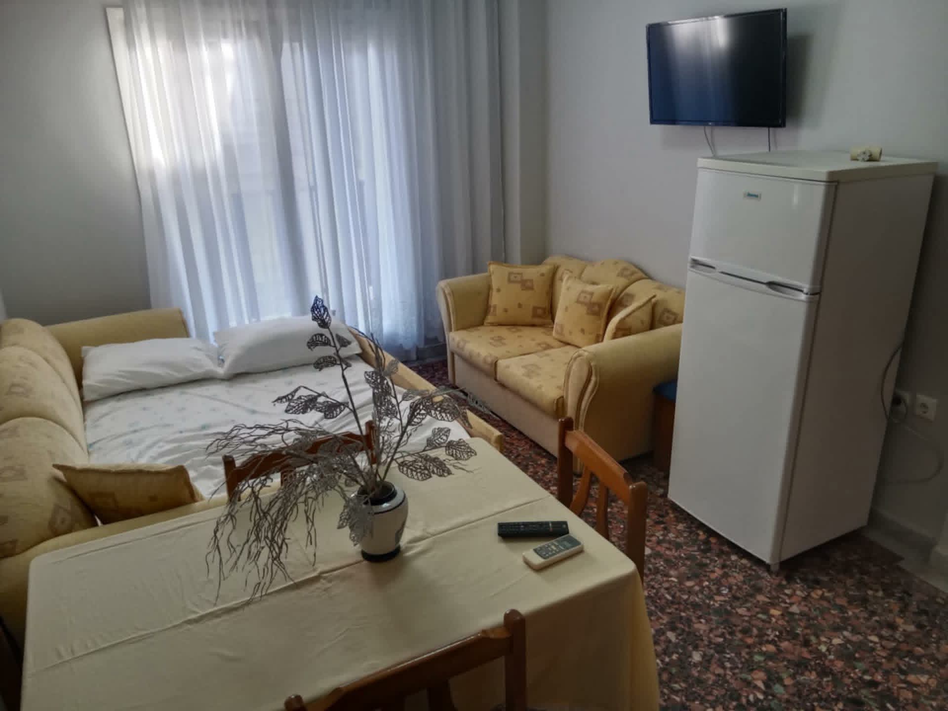 Апартман бр.1 во Неа Плагија. За 4 лица. 80 метри од плажата. Имате еден брачен кревет во едната соба, плус 2 единечни кревети во другата соба. Кујна опремена за подготовка и сервирање храна и пијалоци. Клима уредот и Wifi се вклучени во цената. Апартманот се наоѓа на првиот кат и има 2 тераси. Една напред и една позади.Апартман бр.2 е наменет за 4-5 лица на 80 метри од плажа. Има еден брачен кревет во едната соба, плус една софа кревет во другата соба. Можност за еден дополнителен кревет. Опремена кујна за приготвување и послужување храна и пица. Клима и Wi-Fi се вклучени во цената. Станот се наоѓа на прв кат и има голема тераса напред и мала тераса назад.